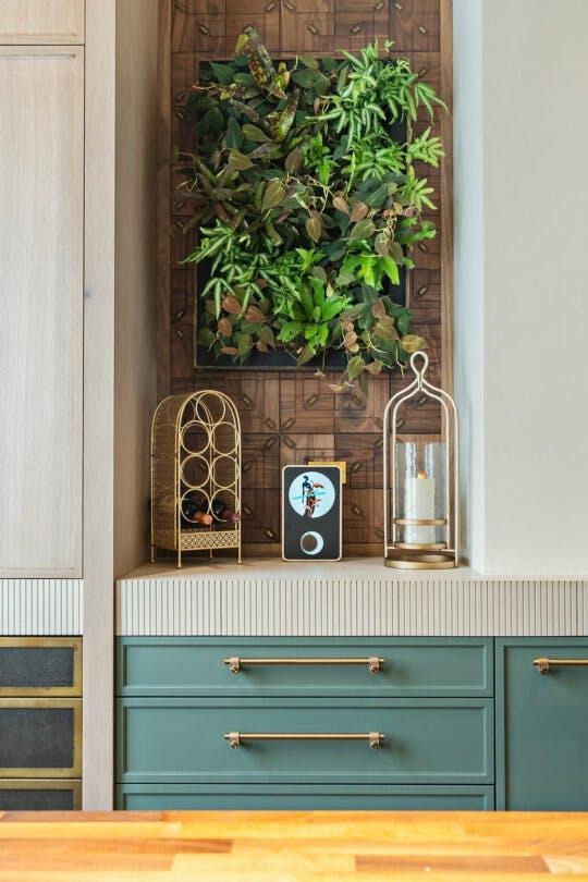 At the same time, bold color statements are beginning to emerge. Designers are incorporating deeper tones such as forest green, moss, and burgundy-veined stone to create focal points within kitchens. These colors often appear on islands or statement counters where they can stand out without overwhelming the room.